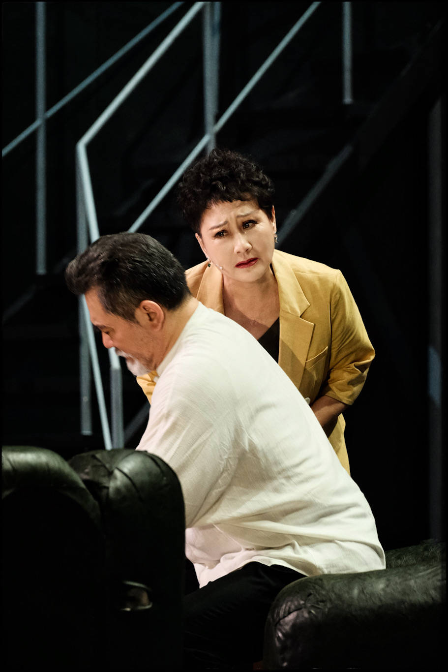 而在此次的全新版本中,凯丽挑战自我饰演瘦马一角,变成了曾经的对手,角色跨度极大。早前在采访中,导演王可然就表示巧玲和瘦马必然是完全不相同的两个女人,“两人核心的戏剧冲突就是对抗,是两个极聪明的女性在对抗”。首演当晚,凯丽一身花裙款款出场,气质妩媚一改巧玲的体面端庄,让人顿时眼前一亮。剧中,有实无名的瘦马一直期望成为真正的单太太,可单无惮凉薄无情,让她蹉跎了青春葬送了名声,还失去了三个孩子,可悲可怜的瘦马逐渐疯狂,几场和男主及正妻的对手戏里,凯丽再次用超强的爆发力将瘦马的挣扎与痛苦表现的淋漓尽致,声声控诉和追问非常有力量,一点一点打动人心,演技入木三分让观者对瘦马的恨与怨感同身受,情绪自然精准又层层递进,带来了极为震撼的舞台效果,获得台下掌声无数。